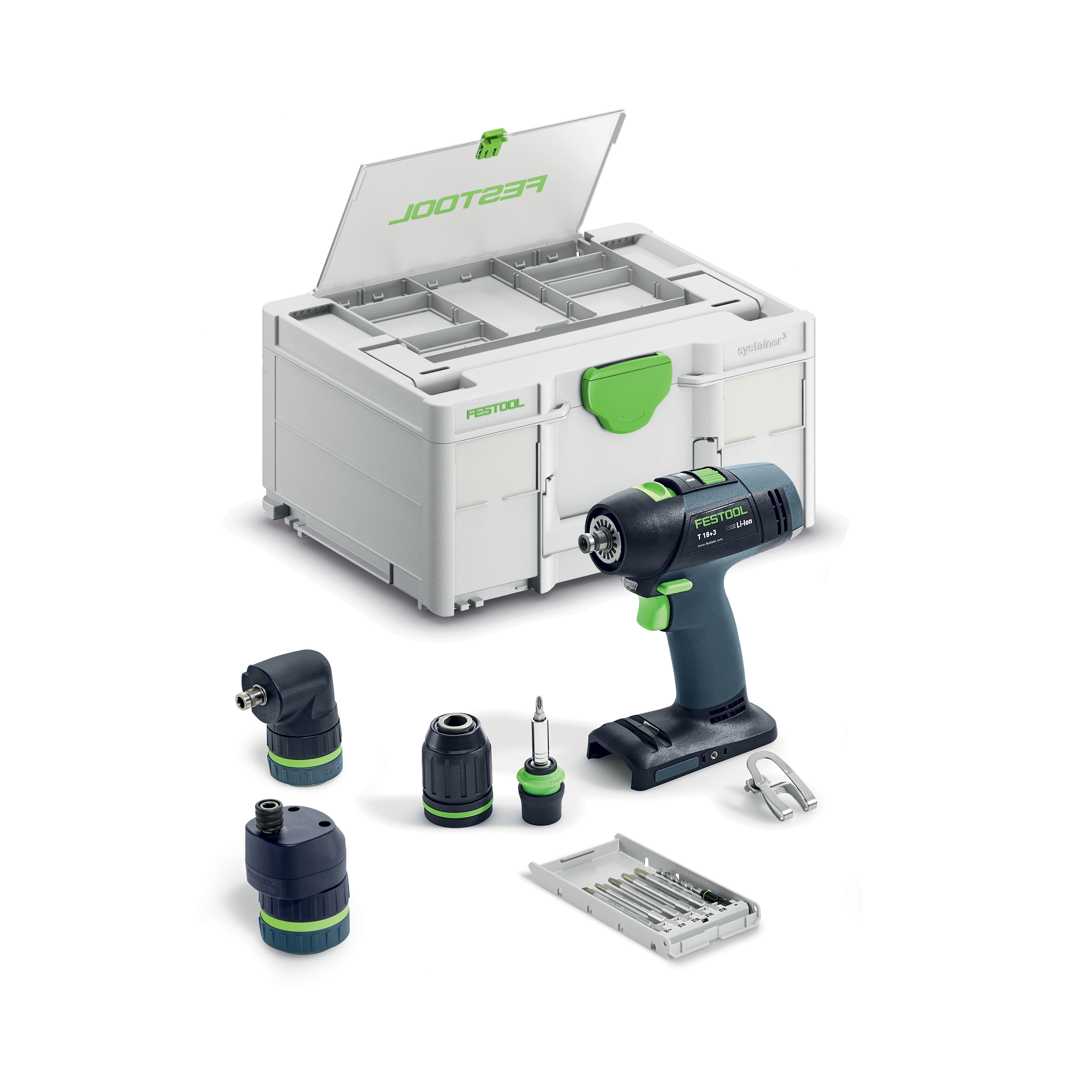 За пълна гъвкавост при пробиване и завинтване: напълно електронна настройка на въртящия момент, CENTROTEC система за бърза смяна, ъглова и ексцентрична приставка, както и дълбочинен ограничител за всяко приложение по пробиване и завинтване. Комбинацията от Li-HighPower акумулаторна батерия и безчетков и съответно неизискващ поддръжка ЕС-ТЕС мотор правят акумулаторния винтовърт Т 18+3 лек, дълготраен и издръжлив. За безгрижно ежедневие акумулаторните винтовърти и акумулаторната батерия са напълно осигурени с Festool Service. На разположение в Т-образна конструкция или – според индивидуалните желания – и като С 18 в уникалната С-образна конструкция.