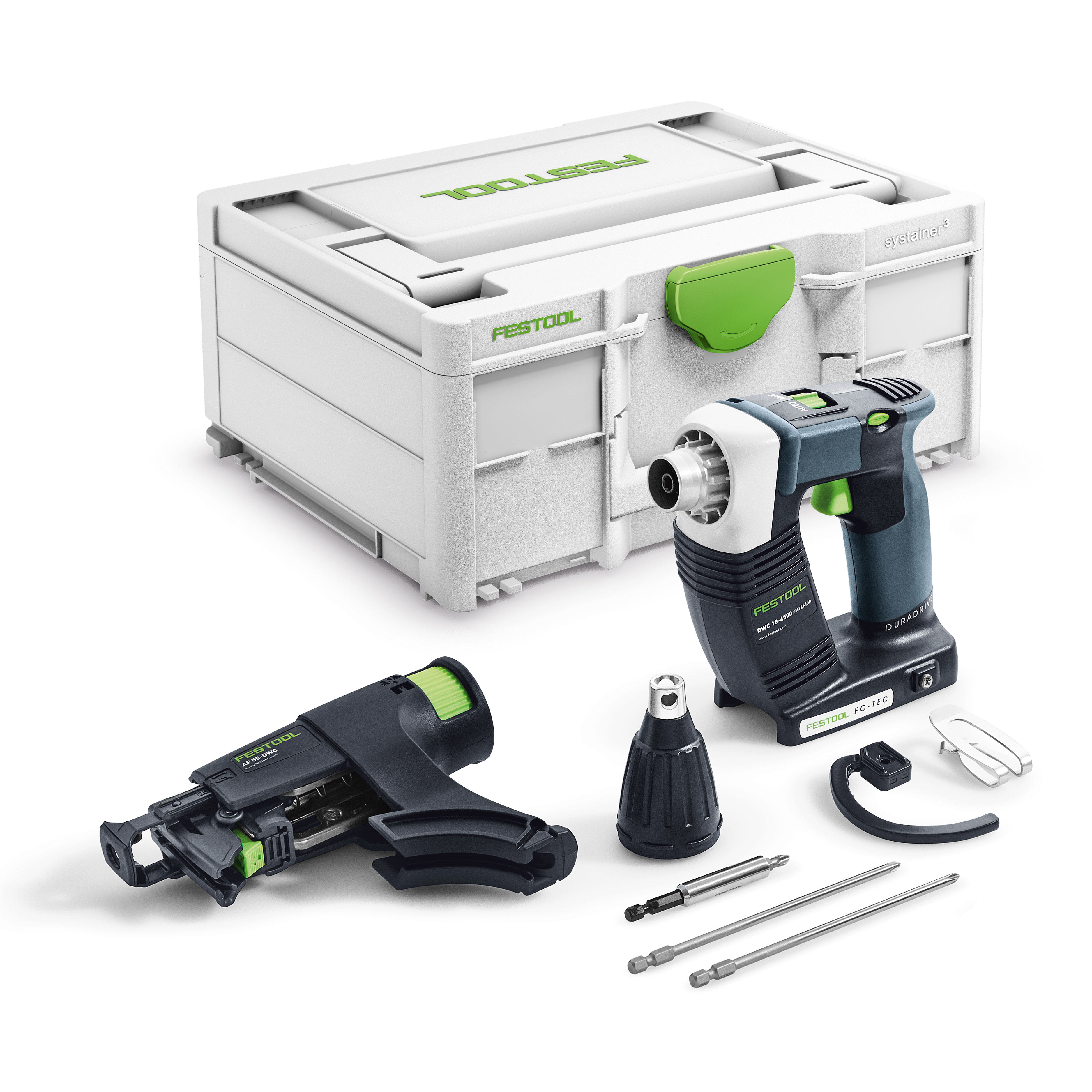Във всеки детайл специализиран за сухото строителство: Късата конструкция и балансираната точка на тежестта осигуряват оптимално разпределение на тежестта – включително и над главата. Приставката-магазин за ленти с винтове е първи избор за бързо и точно завинтване с една ръка – с точна дълбочина и огромен брой ходове. Благодарение на иновативната Stop-and-Go функция безчетковият EC-TEC мотор работи само тогава, когато се използва, което прави възможно до 40 % по-висока производителност при завиване на едно зареждане на батерията.