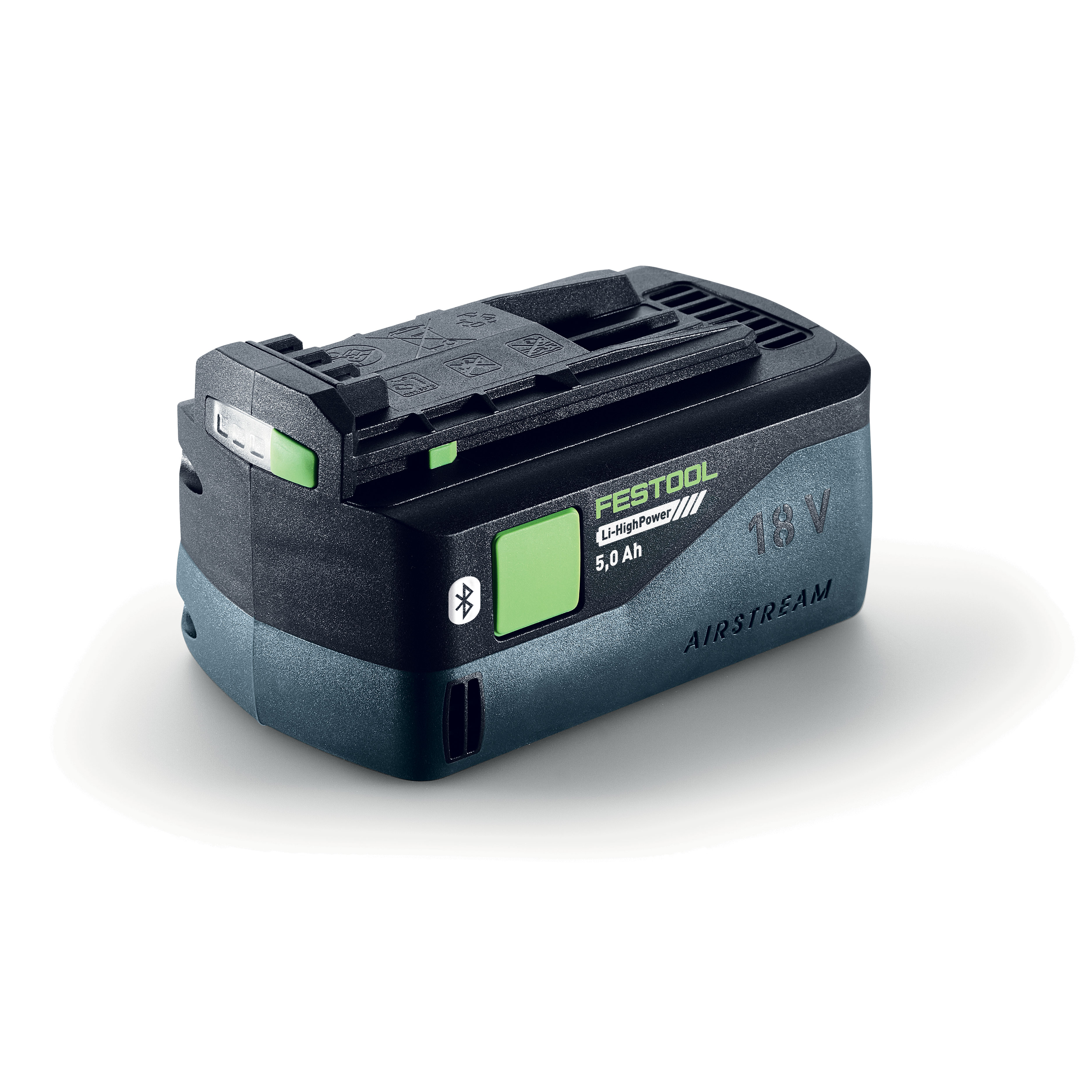 Акумулаторната батерия Li-HighPower с капацитет 5,0 Ah е наистина универсална и е подходяща за всички машини и приложения. Благодарение на иновативната клетъчна технология на Li-HighPower, тя предлага още повече мощност: Особено при най-новото ни поколение акумулаторни циркулярни триони и акумулаторното ренде HLC 82. Тя осигурява до 50% повече мощност в сравнение със стандартната акумулаторна батерия с капацитет 5,0 Ah. Мощната батерия подпомага работата с изключителна производителност и продължително време на експлоатация. За това се грижи перфектното съгласуване на акумулаторната батерия с нашите безчеткови ЕС-ТЕС двигатели. Впечатлява и при зареждането: Благодарение на AIRSTREAM технологията при зареждане с AIRSTREAM бързозарядно устройство SCA 16 преди и по време на процеса на зареждане се охлажда активно и изключително бързо става отново готова за работа с максимална зарядна мощност. Оборудвана е с Bluetooth®, стартира автоматично сдвоената мобилна прахосмукачка при включване на акумулаторната машина. В комбинация с приложението Festool, предлага детайлна информация за състоянието на зареждане, за работните данни, като напр. температура или цикли на зареждане. И, разбира се, е напълно подсигурено с Festool SERVICE.