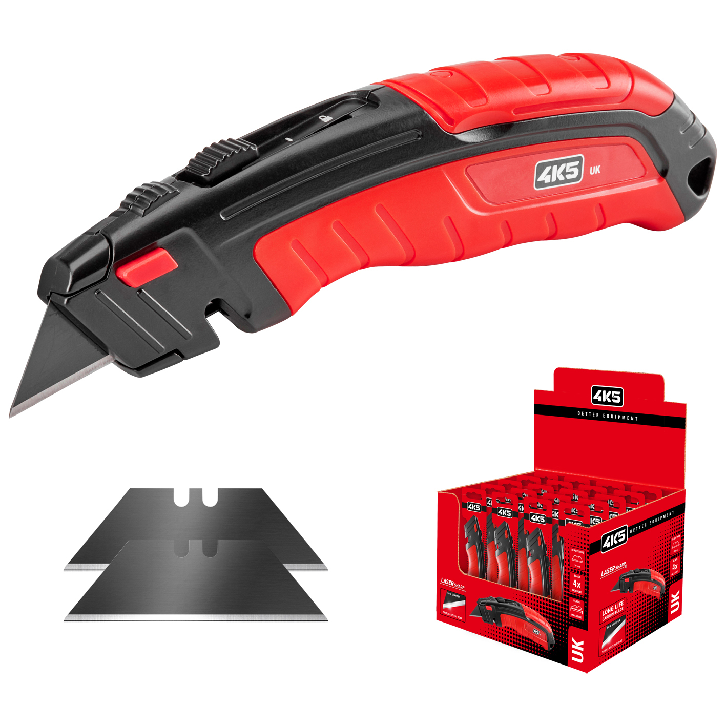 Олекотен, стабилен и безопасен макетен нож с трапецовидни остриета, резачка за ленти и вграден магазин с резервни ножчета