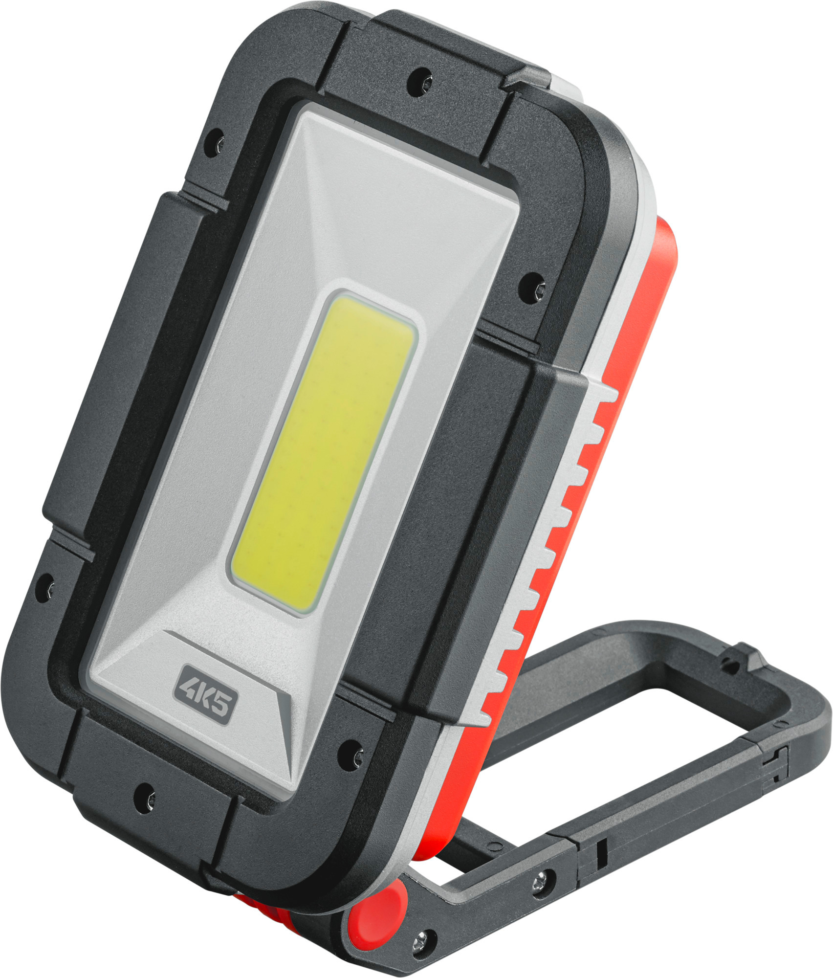 Мощна светодиодна строителна лампа/ прожектор с функция зарядна станция и разнообразни възможности за закрепване