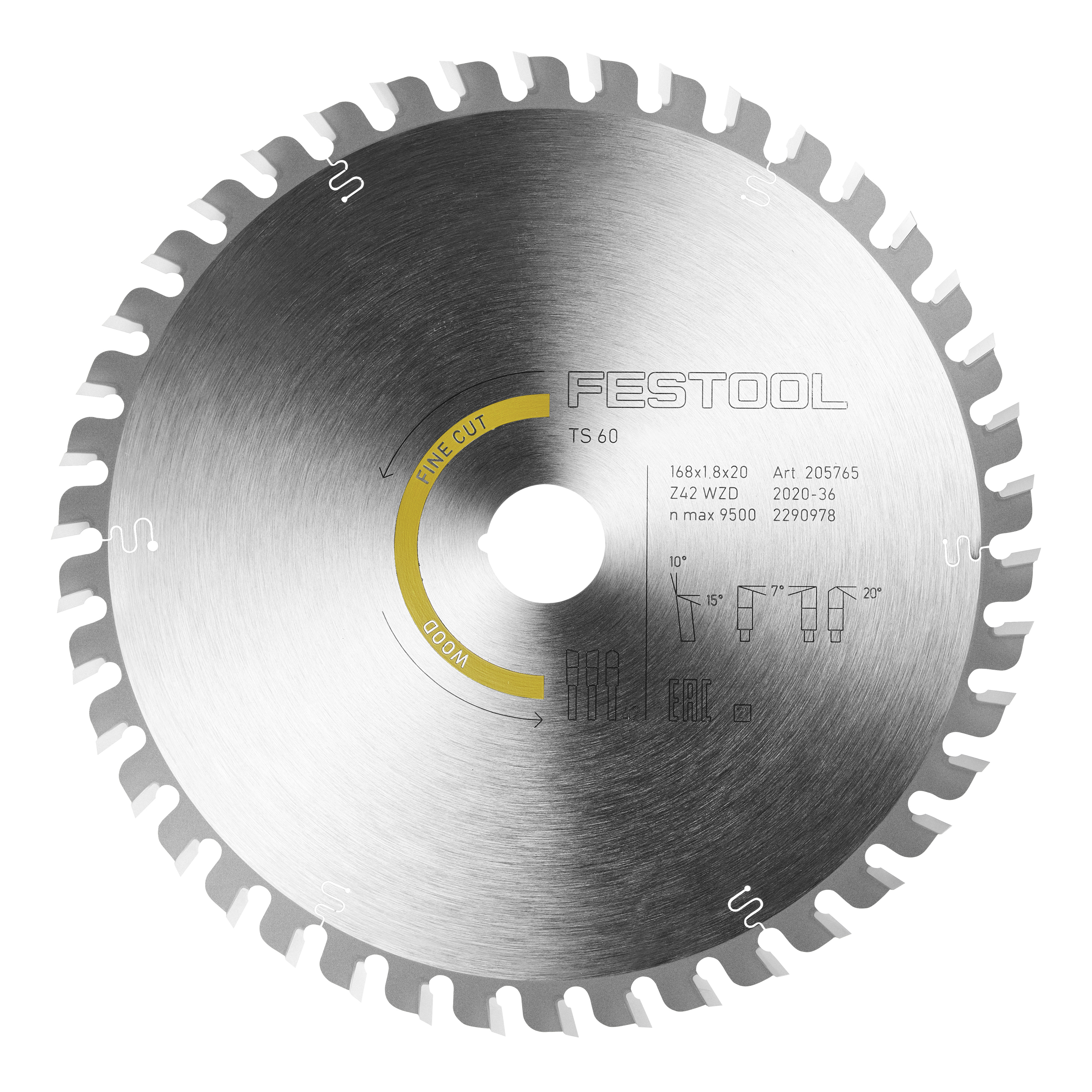 205765 Циркулярен диск WOOD FINE CUT, HW 168x1.8x20 WD42 - за TS 60 K, CSC-SYS 50