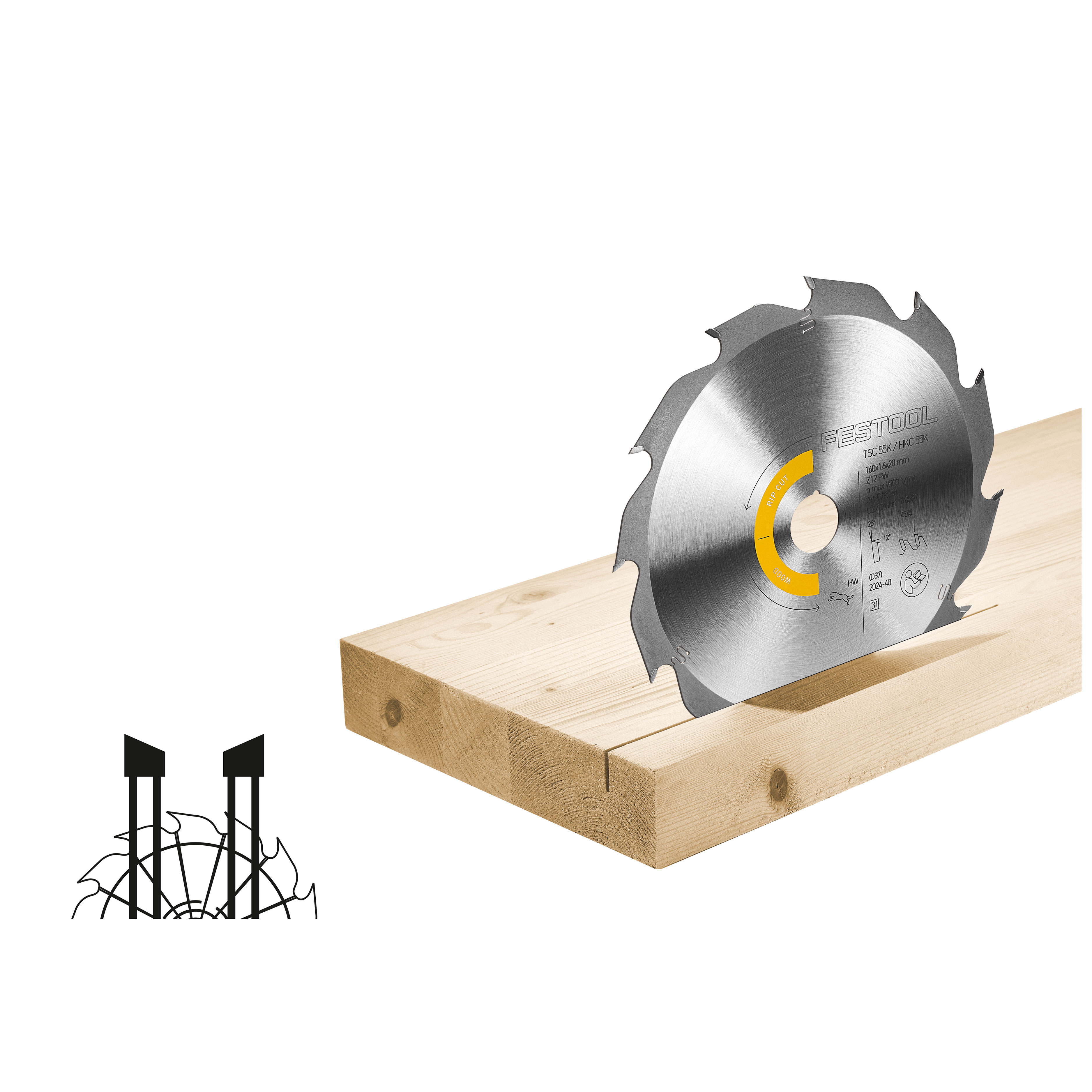 578580 Циркулярен диск WOOD RIP CUT, HW 160x1.6x20 PW12 за HKC 55 K, TSC 55 K, TSC 55 KS